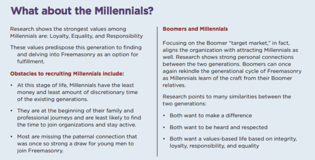 The Scottish Rite also has some interesting observations on Millennials specifically, the subject of much Masonic moaning.
