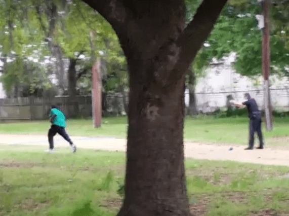 Do not be callous. Do not attempt to explain the problem away. This is a picture of a black man fleeing, and being shot in the back by a police officer.