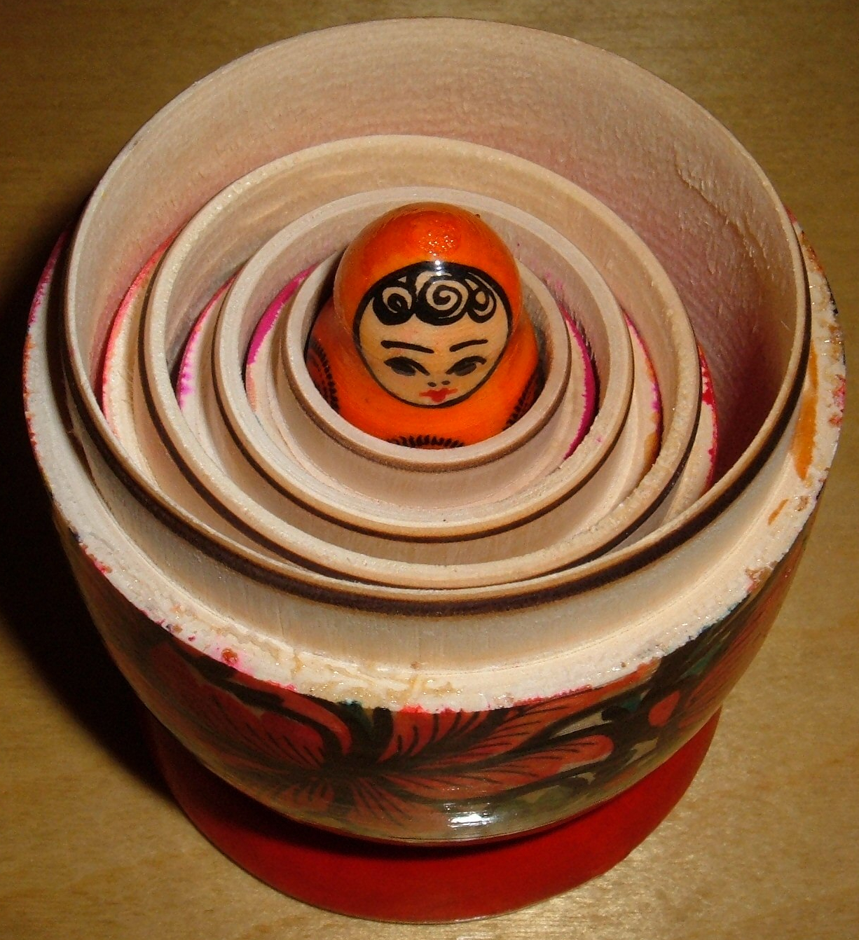 When we look at this nesting doll arrangement, we can see the level above wherever you are looking has certain constraints and knowledge, and the level below has a different set of knowledge.