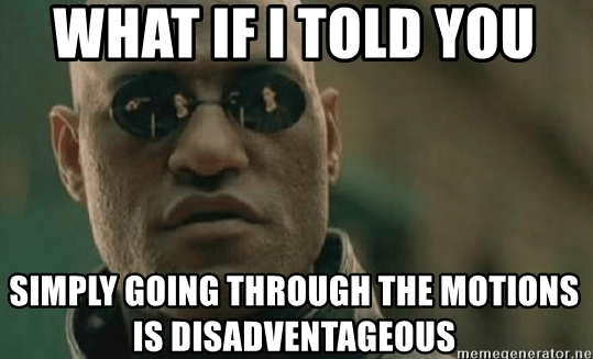 Ritual is a way to show faith, but when it becomes habitual, it robs the ritual of its impact. Ruts are not easy to get out of (behavioral, emotional, and cognitive)