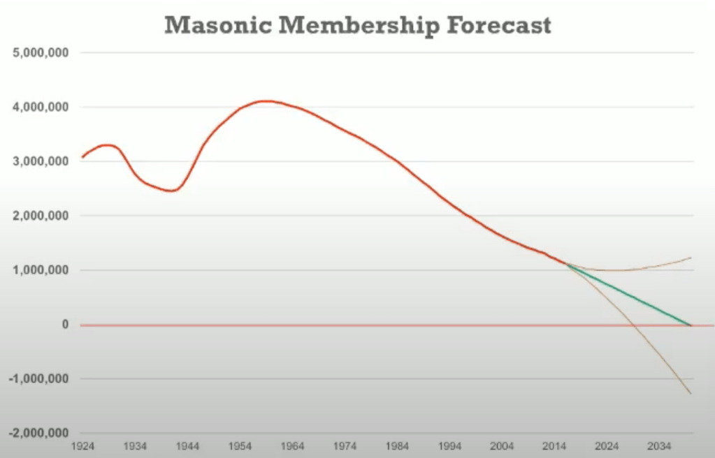 Yes, yes – I hear it all the time, “Freemasonry can’t die, we’re just retrenching”. It will just shrink and become more focused, right? Well to this I would answer: how do you know and where is your data that leads you to such rosy predictions? It’s all gut feel.