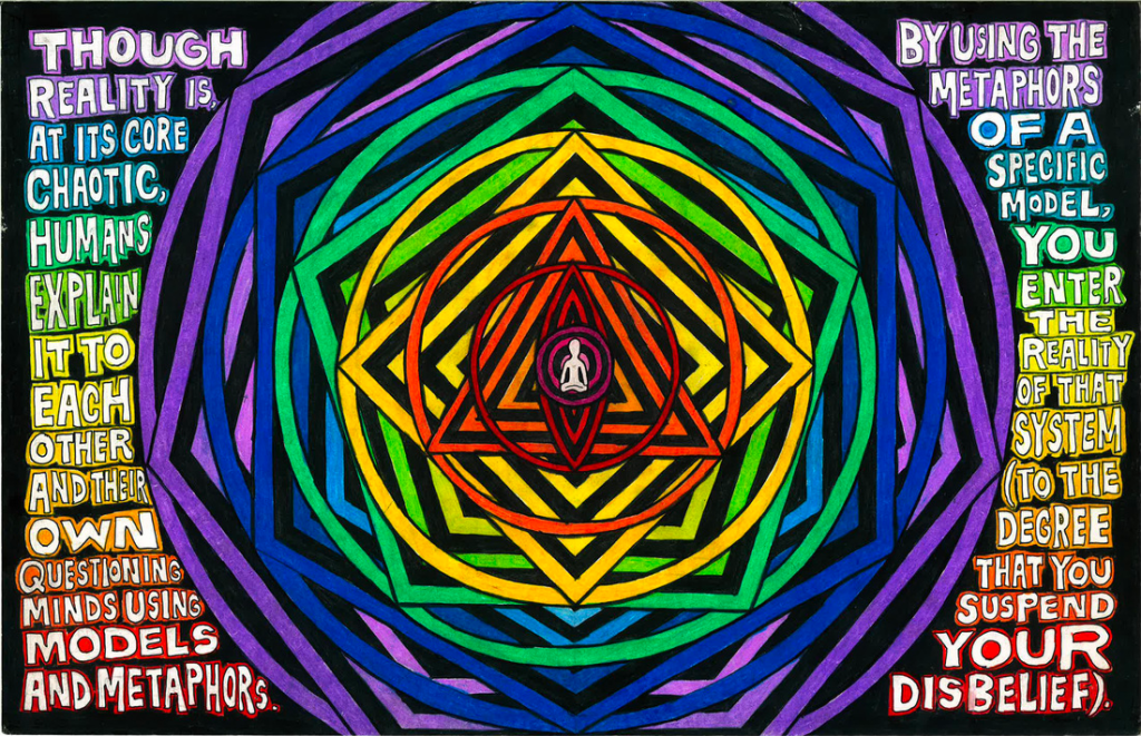 Though reality is at its core chaotic, humans explain it to each other and their own questioning minds use models and metaphors. By using the metaphors of a specific model, you enter the reality of that system (to the degree that you suspend your disbelief)